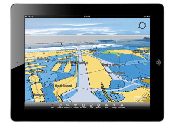 * C-Map’s new Plan2Nav mobile app for iPad and iPhone devices provides a planning app for anglers that offers some dynamic content, such as tides, currents and weather with forecasts, detailed harbor charts and aerial photos, depths and an aids. C-Map also allows users to manipulate the image to view the map at different angles (see picture). Download the free app from iTunes, and then pay $19.99 to $29.99 to download regional charts (jeppesen.com/plan2nav).