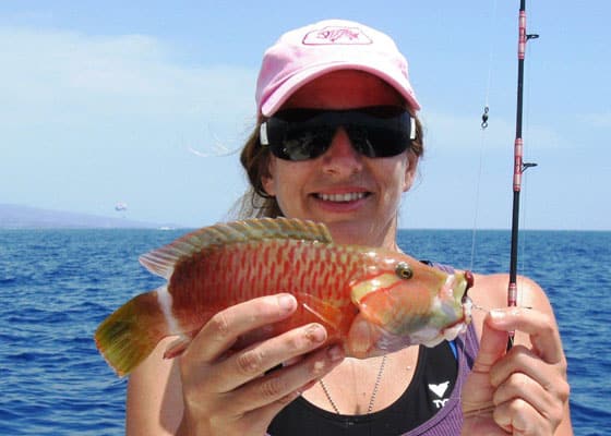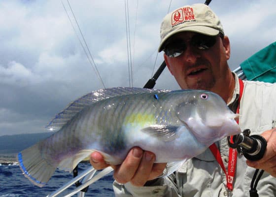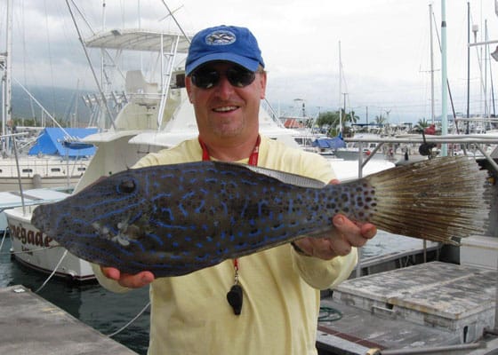 That’s ace skipper Dale Leverone, and his son Jack, who appears rather concerned that the gray triggerfish will attack. If you’re in Kona, look Dale up on http://www.konadeepsea.com/charters/capt.htm or email him at leveroned001@hawaii.rr.com.