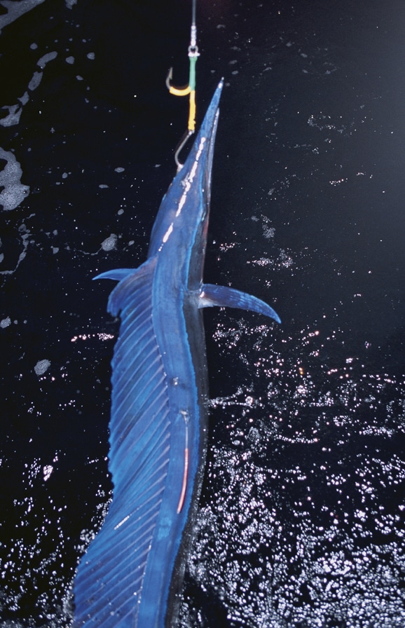 Blue marlin are sought and caught in warm waters around the world. Often, enthusiasts hope for the ultimate catch: a grander (a blue marlin weighing at least 1,000 pounds). The IGFA maintains separate categories for Atlantic and Pacific all-tackle world records (though it’s one species). The world-record blue in the Atlantic: 1,402 pounds, 2 ounces, from Vitoria, Brazil, in 1992. From the Pacific: 1,376 pounds from Kona, Hawaii, in 1982.