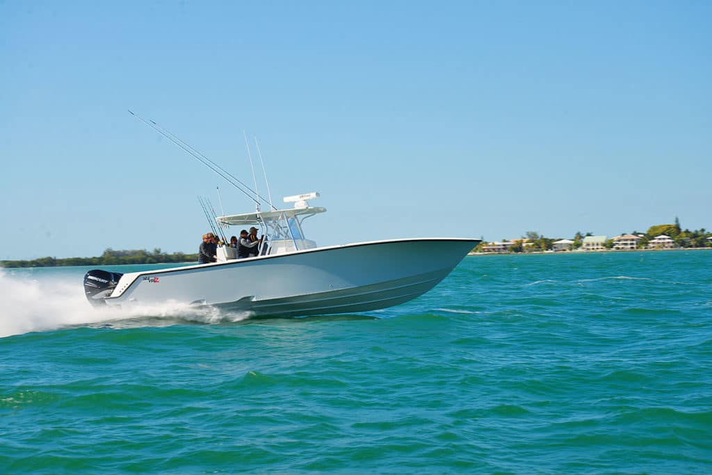 Sea Vee announced the fourth offshore center-console model in the stepped-hull Z lineup — the 370Z — at the Miami International Boat Show earlier this year. The 370Z’s hull design features multiple lifting bodies with unique geometry, which results in a fixed running-trim angle. Sea Vee also employs a four-port air-induction system that uses a central air-reservoir unit to maintain air cavities that reduce power- and speed-robbing drag.