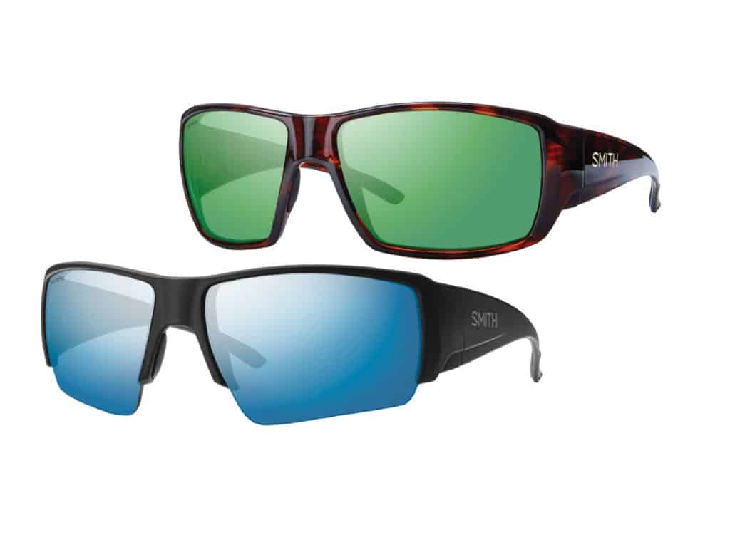 Smith Optics has re-engineered its 1990s Guide’s Choice frames (top) and introduced a semirimless Captain’s Choice (above). Both styles come in four possible colors and offer several Techlite glass and ChromaPop polarized lens options. The wide temples reduce glare, and the Megol nose pads offer a secure fit. Guide’s Choice glasses cost $209 to $249, and Captain’s Choice glasses cost $219 to $249.