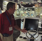 Roger Taylor shows off his favorite features in the new EdgeWater 280CC at the Fort Lauderdale International Boat Show