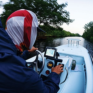 Garmin’s Gene Quinlan demonstrates how to lock the touchscreen when the seas get rough.