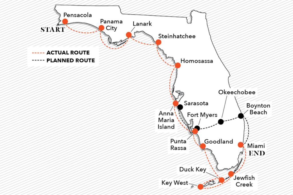 The team planned an early-March launch because of the predominant northwest winds — even embracing the additional threat of severe weather as an extra challenge — and because water levels would be high enough that the Okeechobee Waterway locks would remain open.